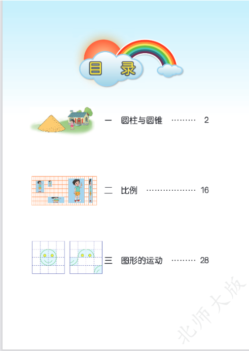 其实,小学数学是一门很有趣的课程,可以启迪孩子的心智,可以培养孩子的逻辑思维,为了方便大家学习借鉴,下面小编精心准备了六年级下册(北师大版)数学电子课本内容,欢迎使用学习!